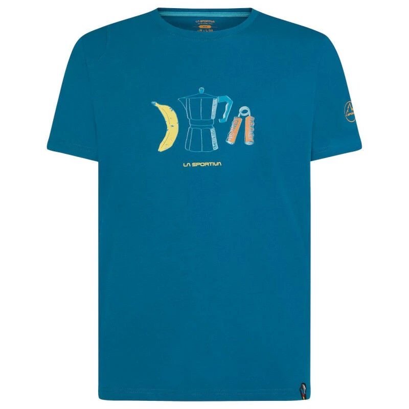 Pour venir à bout de votre prochaine grande voie, mieux vaut être en pleine possession de vos moyens et donc disposer de suffisamment d’énergie pour ne pas subir de coup de pompe. C’est pourquoi, le t-shirt Breakfast de la marque La Sportiva est là pour vous rappeler l’importance d’un bon petit déjeuner avant de partir en montagne. Avec son design sympa, ce t-shirt d’escalade pour homme vous rappellera les quelques ingrédients essentiels à consommer avant de partir à l’assaut des parois. Vous êtes prêt à avaler les ascensions avec le Breakfast T-Shirt !